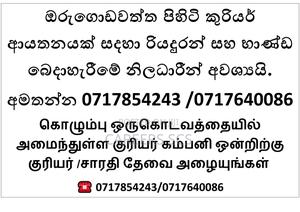 ඔරුගොඩවත්ත පිහිටි කුරියර් ආයතනයක් සදහා රියදුරන් සහ භාණ්ඩ බෙදාහැරීමේ නිලධාරීන් අවශ්යයි. අමතන්න கொழும்பு ஒருகொடவத்தையில் அமைந்துள்ள குரியர் கம்பனி ஒன்றிற்கு குரியர் /சாரதி தேவை அழையுங்கள் /